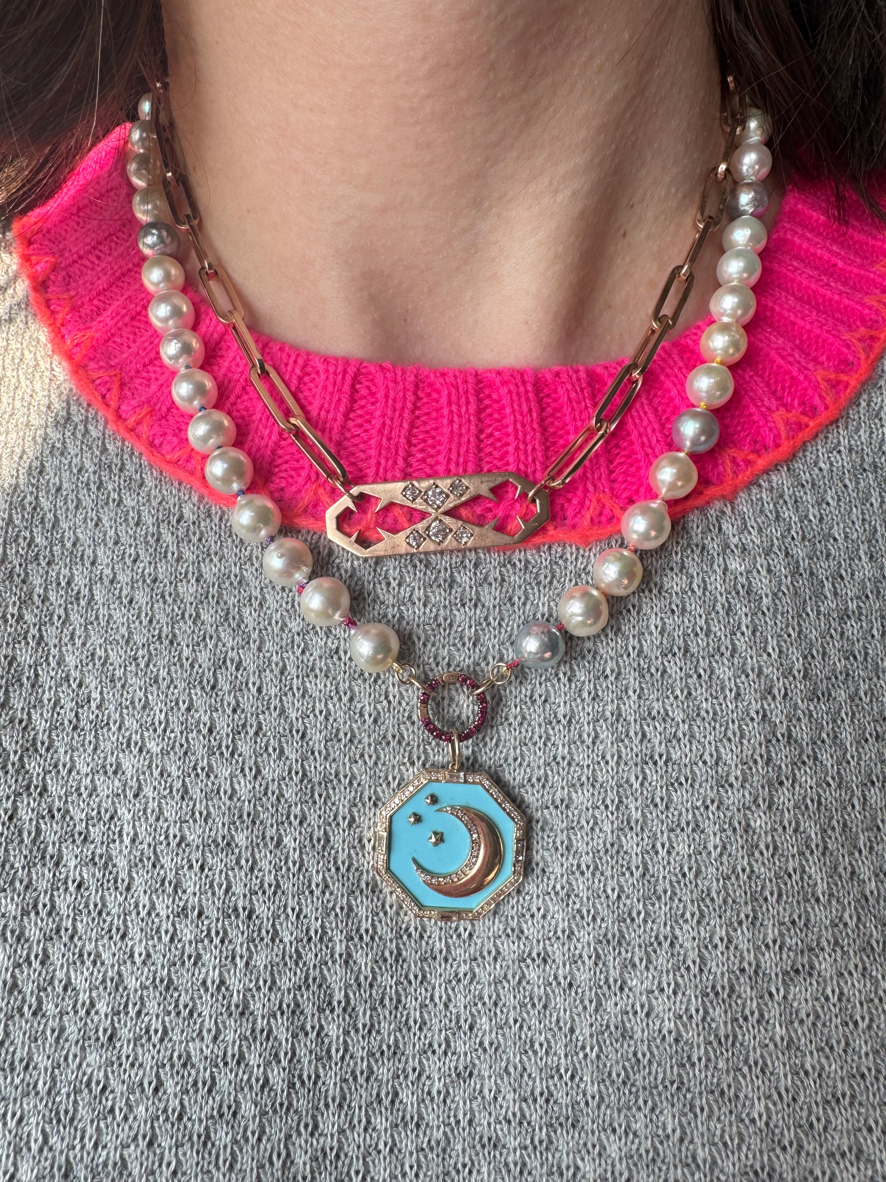 Finished with our OPEN ENDED jump-ring system, it’s designed for total versatility. Wear it with the clasp at the back for a classic silhouette, or bring the hardware forward and layer on charms, enhancers, or one of our interchangeable clasps to shift the entire mood. A strand that evolves with you