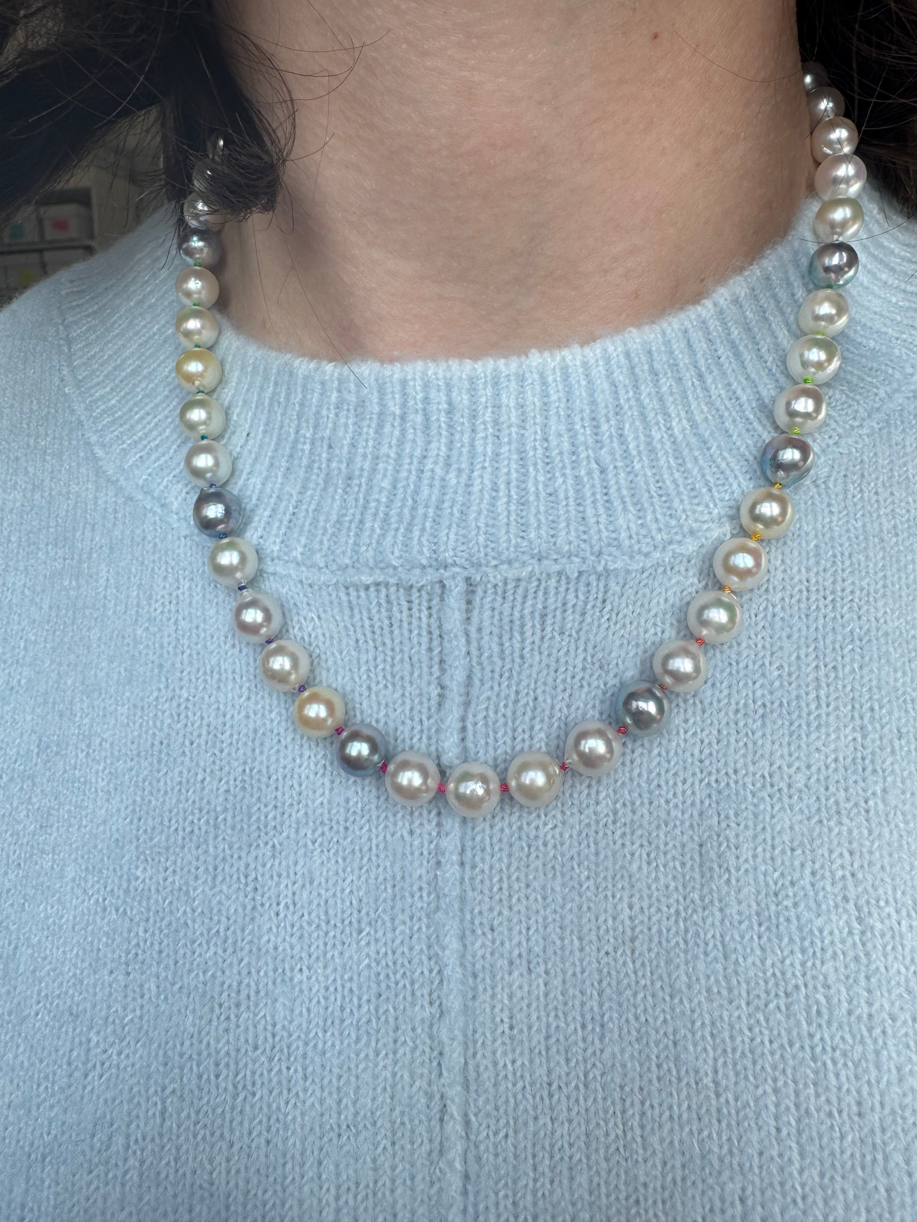 We knotted the strand on our technicolor silk cord, creating a subtle gradient that feels joyful yet refined — like spun sugar rendered in jewel form. It reads modern yet timeless, playful yet deeply luxe. A little unexpected. A little subversive. Completely irresistible.